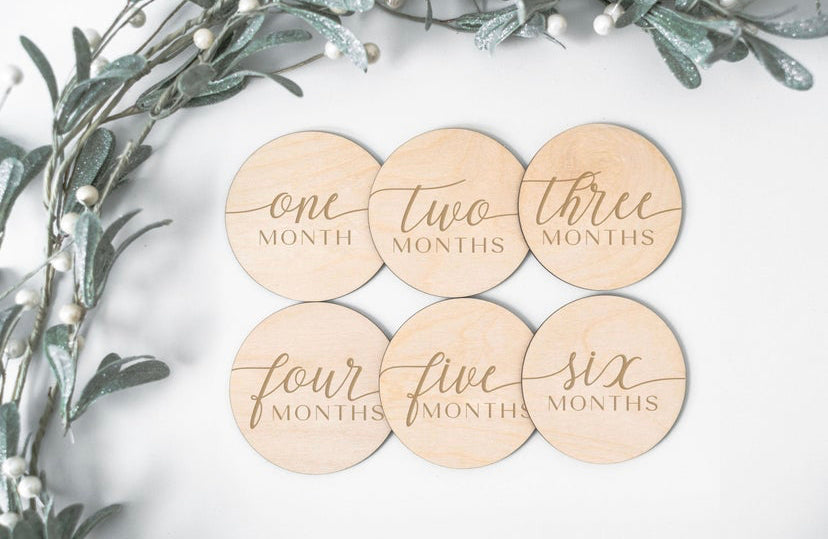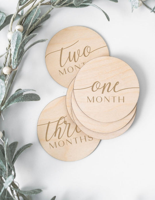 Our adorable monthly milestone trackers are the perfect way to document your sweet little one's growth! Just place the wooden plaque next to the baby and take a picture. Perfect for a baby shower gift, birth announcements, photography sessions and more!