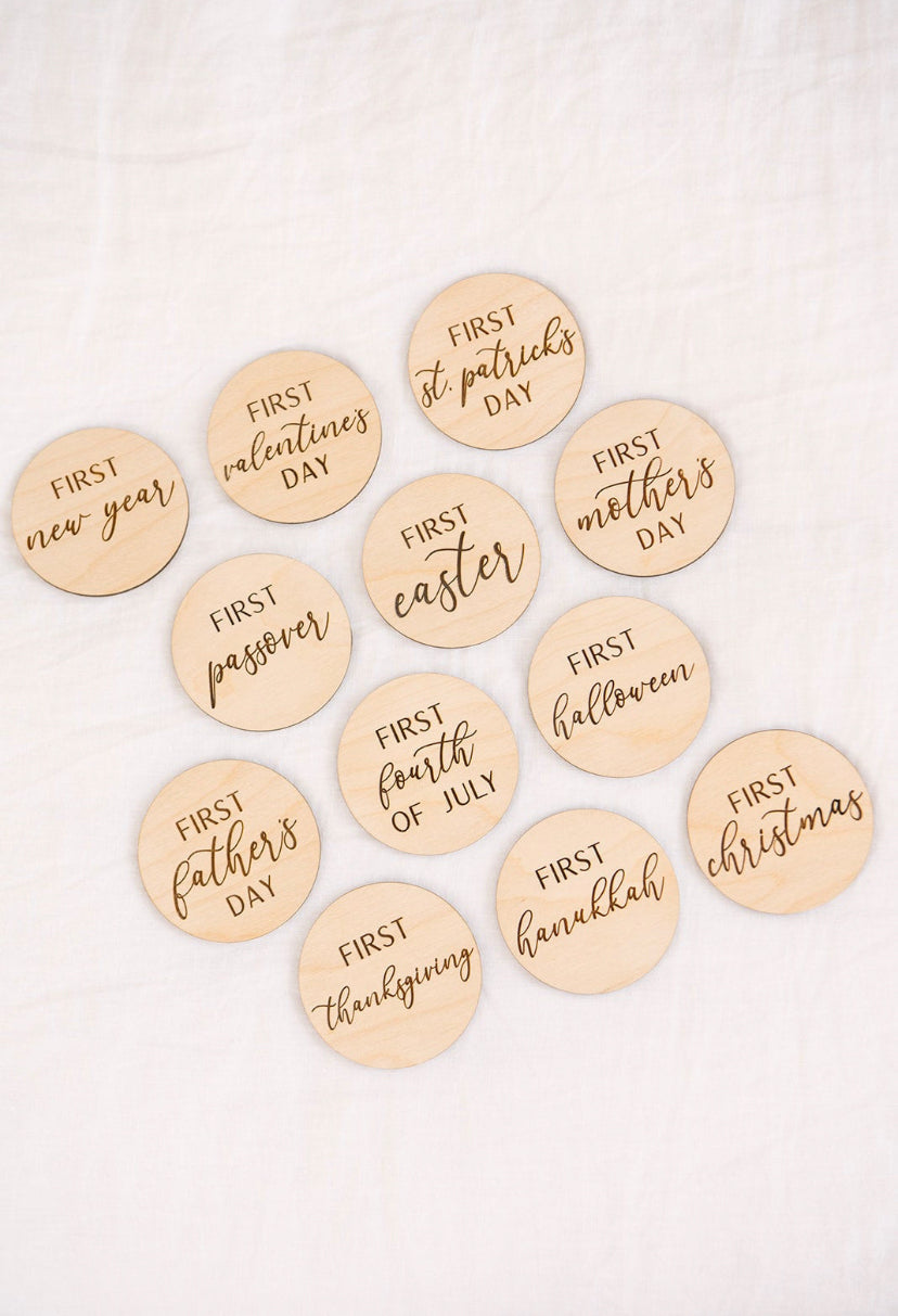 Holiday milestones include: My first Christmas, first New Year’s, First Valentines Day, First Easter, First Birthday, First St. Patrick's day, First 4th of July, First Halloween, First Thanksgiving